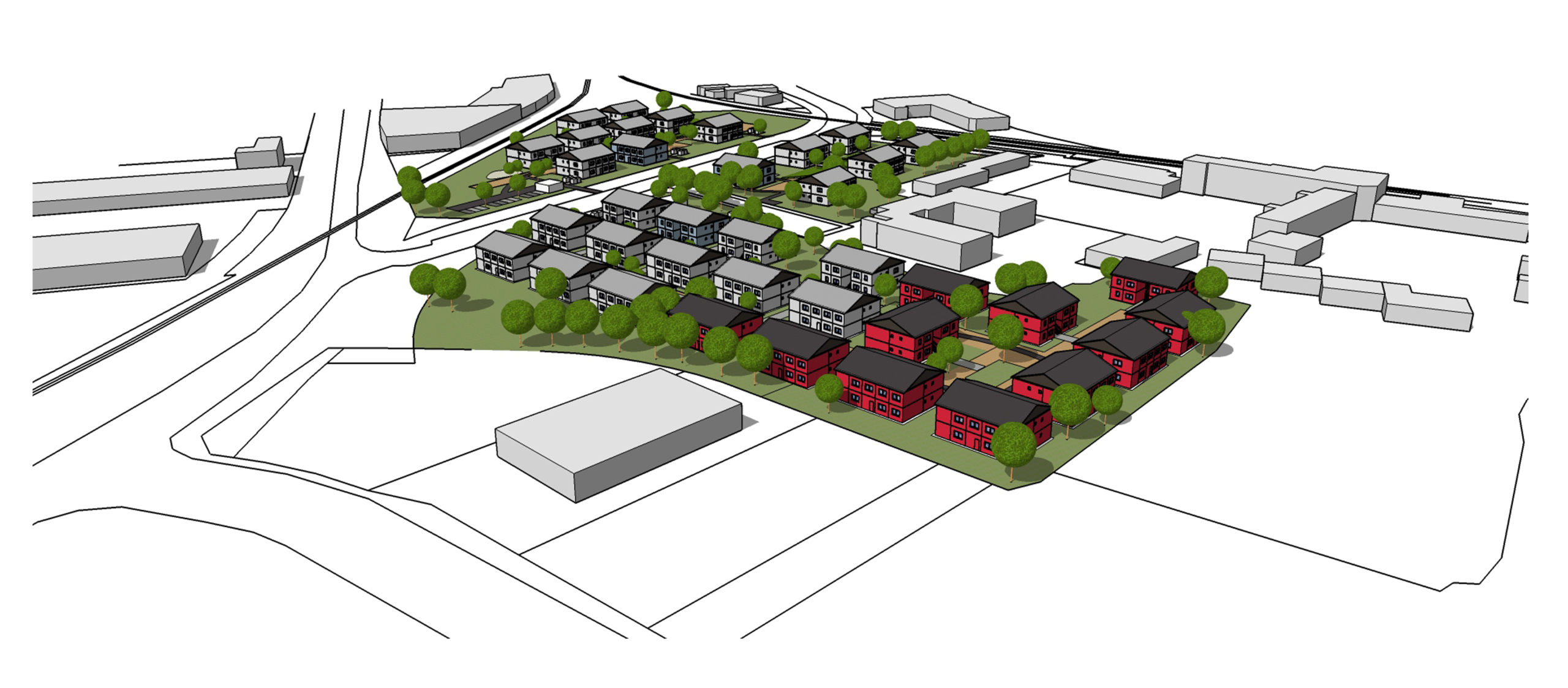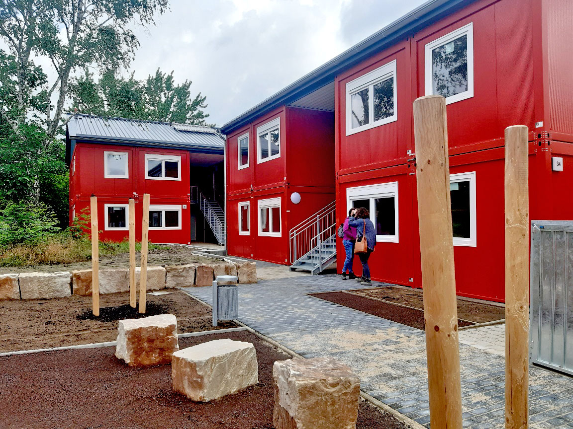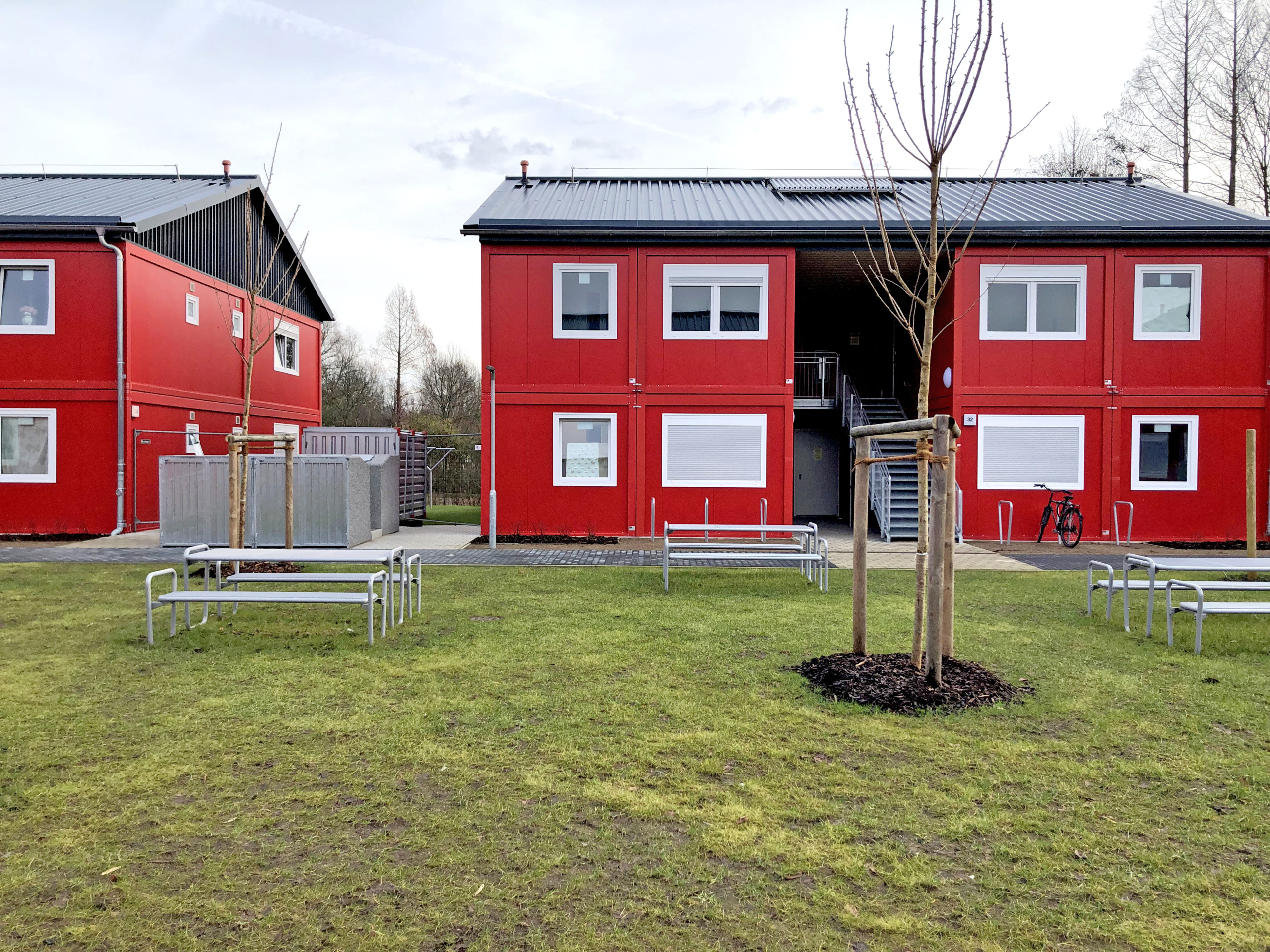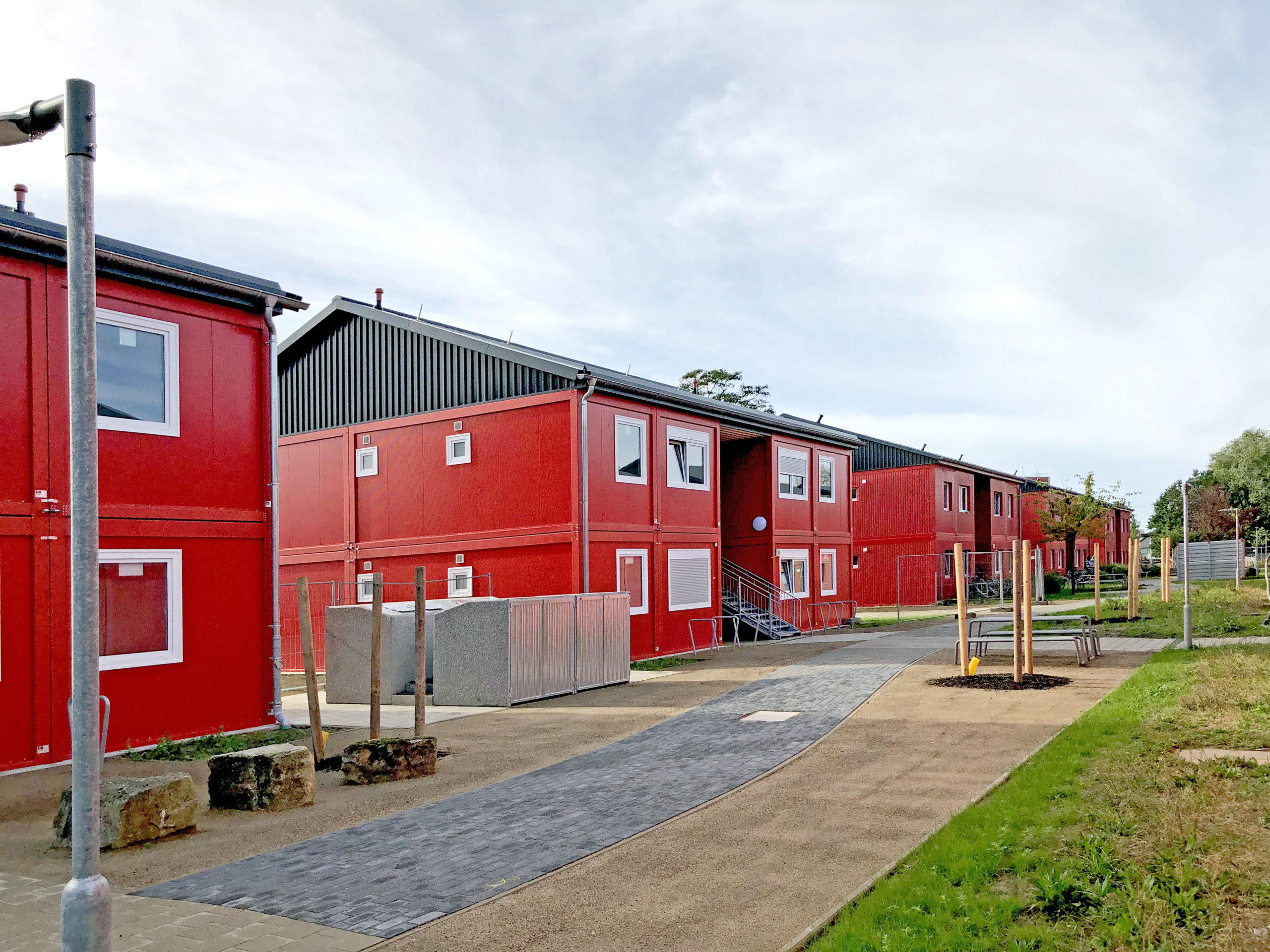 Neubau von zwei Containerdörfern mit insgesamt 41 Modulhäusern, inklusive 4 Gemeinschaftshäusern, Verwaltungsflächen und gemeinschaftlich genutzten Küchen in 684 Modulen für über 850 Menschen