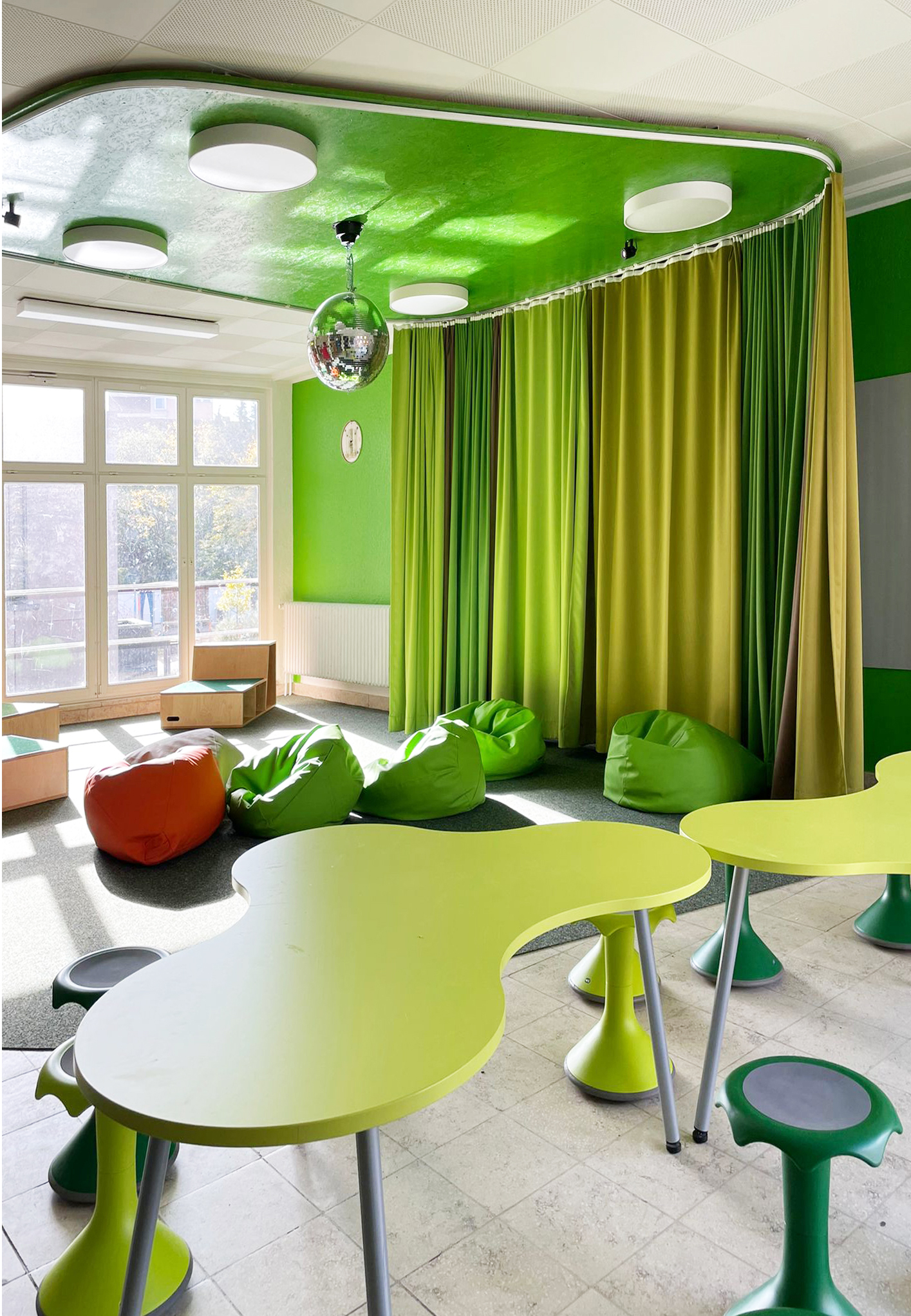 Durch das Förderprogramm „Guter Ganztag“ konnten neue multifunktionale Räume und Flure in der Grundschule gestaltet werden,